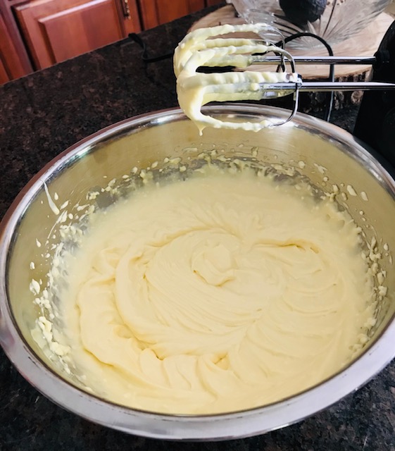 Place the yolks in another bowl and beat with a hand held electric mixer. Add two 8oz containers of mascarpone cheese, and 1c of sugar. Beat until well combined.