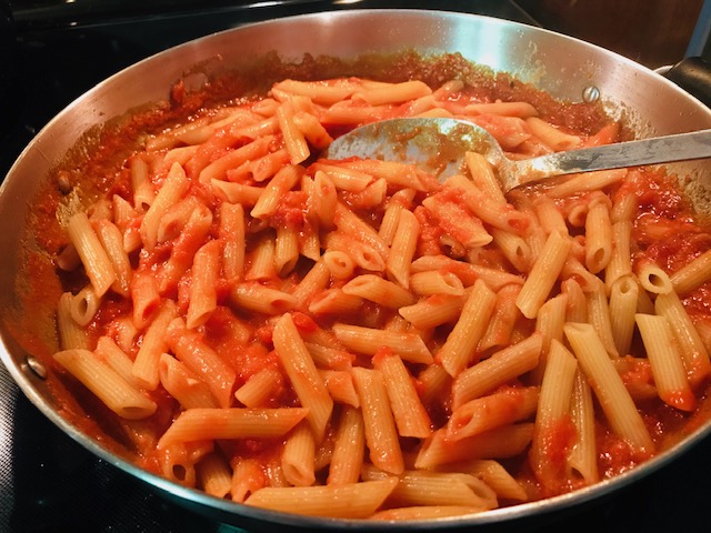 What a wonderful world it is where vodka can be used to make a sauce for pasta! I can honestly say that I love vodka sauce and every time make it, I ask myself why I don’t make it more often.